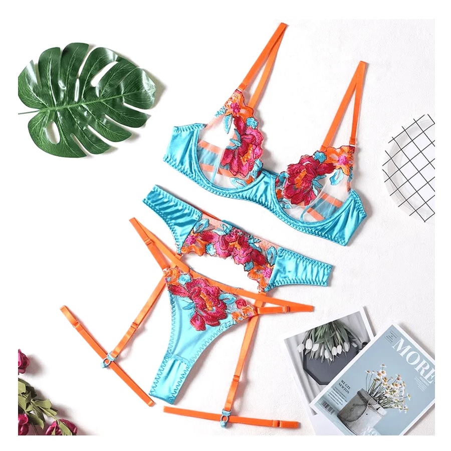 Despierta tus sentidos con nuestro lujoso set de lencería que incluye calzón, sostén y portaligas, diseñado para realzar tu feminidad con un toque irresistiblemente sensual. Este conjunto se distingue por sus delicados encajes y elegantes ligas, que no solo ofrecen un aspecto sofisticado, sino que también brindan una experiencia de confort inigualable.