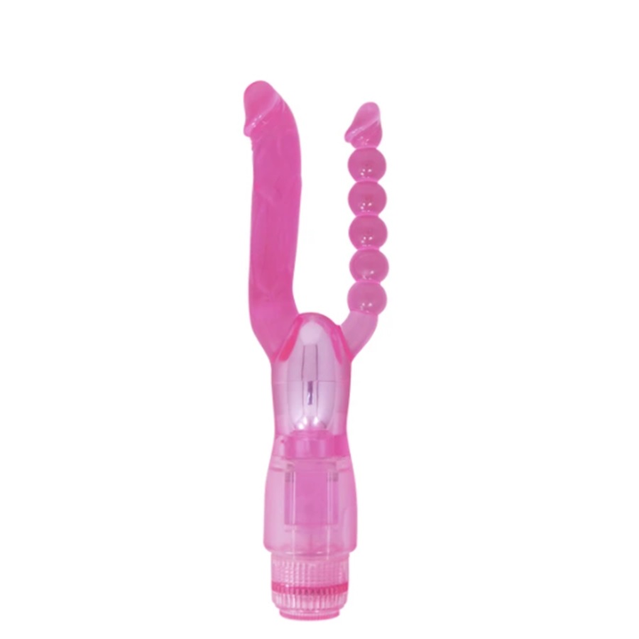 Enriquece tu vida sexual con este vibrante estimulador con pene flexible y bolitas anales, que satisfarán tu fantasía de la tan buscada doble penetración.
