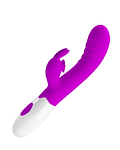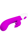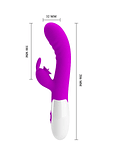 Descubre el Vibrador Dual Cerberus . Su forma curvada está especialmente diseñada para estimular la zona G, mientras que su estimulador clitorial cuenta con una pequeña lengua vibradora potente y tierna, combinada con un coqueto conejín que hará que te atrevas a explorar tus límites.